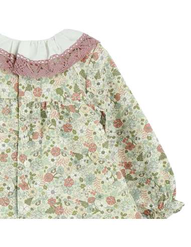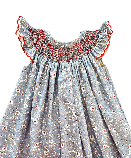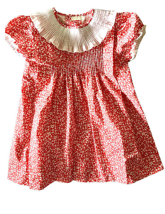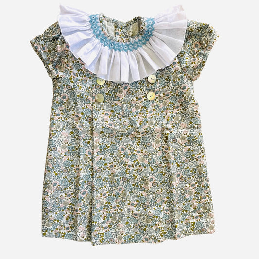 Baby Ruffle Collar Hand Smocked Floral Dress