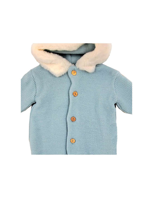 Fur Hooded Knitted Coat in Blue