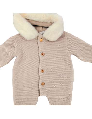 Fur Hooded Knitted Bodysuit Coat in Beige