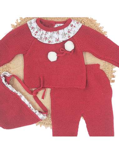 Baby Set in color Red with Ruffle Collar and matching Bonnet