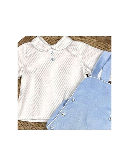 Boys Set of White Mao Collar Shirt, Beige Short Pants and Brown Belt